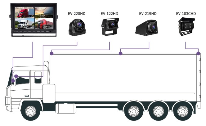 SISTEMA CON INTELIGENCIA ARTIFICIAL DE MONITOR Y CAMARA DE REVERSA DE USO RUDO PARA CAMIONES