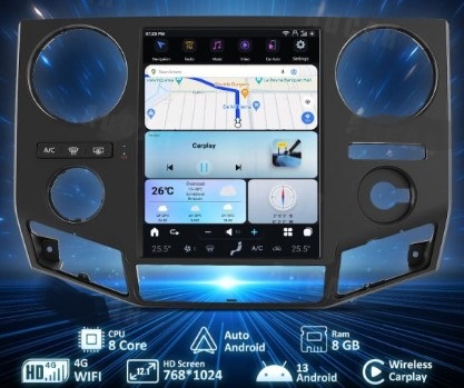 Pantalla de formato vertical tipo tesla de 12.1″ para Ford F250, F350, F450 y F650 de los años 2010 al 2016